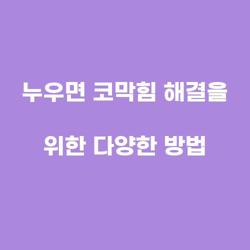 누우면 코막힘을 해결하기 위해서는 몇 가지 방법을 시도해 볼 수 있습니다. 먼저, 코막힘이 심한 경우에는 코를 비워주는 약을 복용하는 것이 도움이 될 수 있습니다. 또한 코를 통틀어주는 스프레이나 코막힘 완화를 위한 기구를 사용하는 것도 좋은 방법입니다. 또한 수면 시 코막힘을 완화하기 위해 머리를 조금 높이고 누워 자는 것도 도움이 될 수 있습니다. 또한 수면 중에 코막힘을 예방하기 위해 침대를 조금 높여 놓는 것도 좋은 방법입니다.