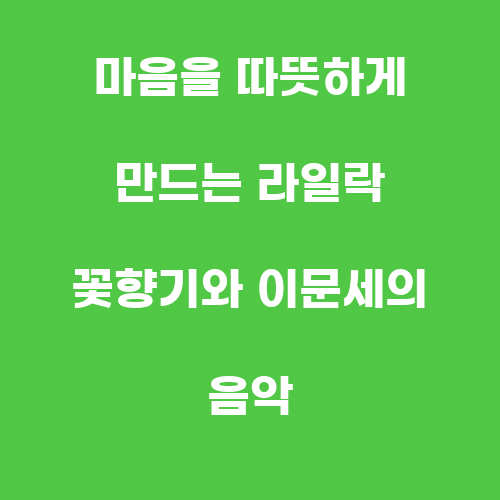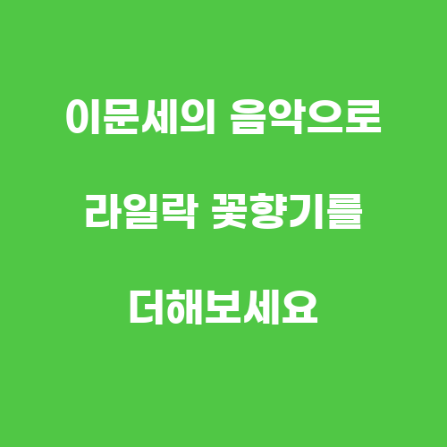 라일락 꽃향기와 이문세의 음악은 마음을 따뜻하게 만들어주는 조합입니다. 라일락 꽃향기를 맡으면 상쾌하고 달콤한 향기가 퍼져나오는데, 이문세의 음악을 함께 듣는다면 더욱 특별한 감성을 경험할 수 있을 것입니다. 라일락 꽃향기와 이문세의 음악은 마음을 편안하게 만들어주고, 여운이 오래 갈 것입니다.