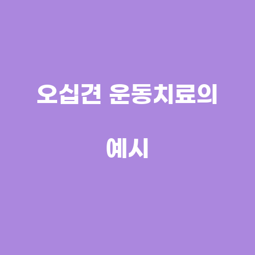 오십견 운동치료의 한 예시는 스트레칭 운동입니다. 스트레칭 운동은 어깨 관절 주변의 유연성을 향상시켜 어깨 움직임의 범위를 확보하는 데 도움을 줍니다. 예를 들어, 어깨를 펴고 등을 돌리는 동작을 통해 어깨 관절 주변의 근육을 스트레칭할 수 있습니다. 또한, 어깨를 올려 귀에 닿게 하는 동작을 통해 어깨 관절의 유연성을 향상시킬 수 있습니다. 스트레칭 운동은 꾸준히 실시하여 어깨 관절의 유연성을 높이는 데 도움을 줄 수 있습니다.