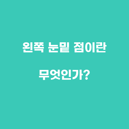 왼쪽 눈밑 점은 피부 상태의 일종으로서 피부에 검은 점이나 주근깨와 같은 작은 반점이 형성되는 것을 말합니다. 왼쪽 눈밑 점은 피부 상태의 일부로서 심각한 질병이나 건강 문제와는 직접적인 관련이 없지만, 외모에 영향을 주어 불편함을 느끼게 할 수 있습니다. 왼쪽 눈밑 점은 여러 가지 요인으로 인해 발생할 수 있으며, 피지선의 과도한 분비가 주된 원인 중 하나입니다. 왼쪽 눈밑 점을 치료하기 위해서는 올바른 스킨케어 및 생활습관이 필요하며, 꾸준한 관리와 예방이 중요합니다. 왼쪽 눈밑 점이 있다고 해서 자신을 부정적으로 생각하지 말고 자신을 사랑하고 긍정적으로 바라보는 것이 중요합니다. 왼쪽 눈밑 점은 외모에 영향을 주는 일시적인 문제에 불과하며, 자신을 사랑하고 긍정적으로 생각하는 것이 가장 중요합니다.