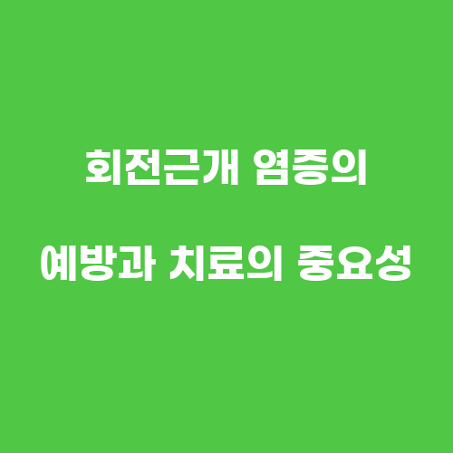 회전근개 염증을 예방하고 적절히 치료하는 것은 매우 중요합니다. 회전근개 염증은 만성화되면 합병증을 유발할 수 있으며, 일상생활에 큰 불편을 초래할 수 있습니다. 따라서, 적절한 예방과 치료를 통해 회전근개 염증을 관리해야 합니다. 또한, 회전근개 염증은 조기에 발견하고 적절한 치료를 받으면 완치가 가능한 질환으로, 전문가의 조언을 받아 적절한 치료 계획을 수립해야 합니다. 건강한 어깨를 유지하기 위해 꾸준한 관리와 주의가 필요하며, 일상생활에서 어깨를 과도하게 사용하는 것을 피하고 균형있는 운동을 통해 회전근개를 보호해야 합니다.