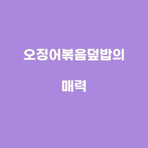 오징어볶음덮밥은 한국인들에게 친숙한 음식 중 하나로, 집에서 간편하게 만들 수 있는 장점이 있습니다. 또한, 오징어와 채소가 함께 어우러져 건강에도 도움이 되는 메뉴로 손색없는 한끼 식사로 인기가 많습니다. 다양한 영양소가 풍부한 오징어와 밥의 조합은 포만감을 높여주며, 맛 또한 일품입니다.