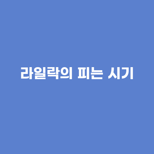 라일락은 주로 4월부터 5월에 피는데, 따뜻한 봄날씨에 적합한 온도와 습도에서 가장 아름다운 꽃을 피우게 됩니다. 라일락은 햇볕을 좋아하므로 햇빛이 잘 드는 장소에 심어주는 것이 좋습니다. 라일락은 특히 5월 중순경에 가장 아름다운 꽃을 피우는데, 이때는 보라색 라일락이 가장 많이 볼 수 있습니다. 이 기간에는 라일락이 가장 풍성하게 피어나기 때문에 많은 사람들이 라일락을 감상하러 찾아오게 됩니다.