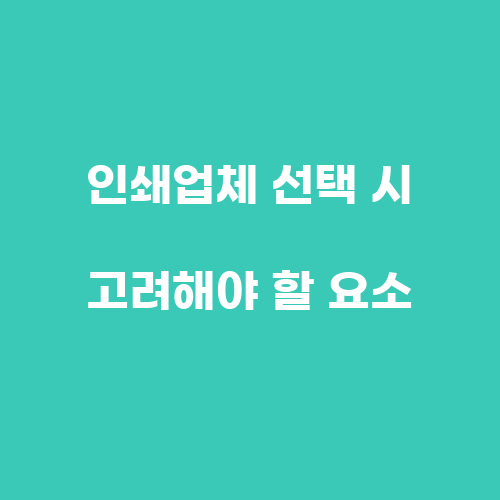 인쇄업체를 선택할 때에는 몇 가지 중요한 요소를 고려해야 합니다. 첫째로, 인쇄물의 종류와 양을 고려하여 해당 업체가 그에 적합한 서비스를 제공하는지 확인해야 합니다. 둘째로, 인쇄물의 퀄리티와 마감 작업에 대한 이해도가 높은 업체를 선택해야 합니다. 또한, 가격과 납기일을 고려하여 비용 대비 효율적인 업체를 선택하는 것도 중요합니다. 마지막으로, 고객 서비스와 응대 태도도 고려해야 합니다.
