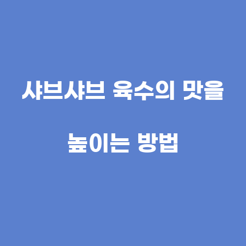 샤브샤브 육수의 맛을 높이기 위해서는 몇 가지 팁이 있다. - 육수를 더 진하게 만들고 싶다면 끓일 때 다시마를 더 오래 넣어둔다. - 건고추와 대파를 끓인 후에도 계속해서 끓이면 더 깊고 풍부한 맛을 낼 수 있다. - 육수를 먹기 전에 소금이나 간장을 넣어 맛을 조절할 수 있다.