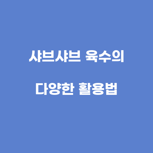 샤브샤브 육수는 샤브샤브 뿐만 아니라 다양한 음식에 활용할 수 있다. - 면 요리: 육수에 면을 넣어 면 요리를 즐길 수 있다. 면 요리에는 우동, 소바, 라면 등이 있다. - 찌개: 육수에 고기나 채소를 넣어 찌개를 만들 수 있다. 대표적인 찌개로는 순두부찌개, 김치찌개 등이 있다. - 볶음요리: 육수를 이용해 볶음요리를 만들 수도 있다. 육수에 고기나 채소를 넣어 볶아 맛을 낼 수 있다.