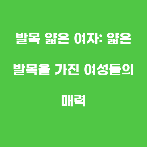 발목이 얇은 여자들은 우아하고 여성스러운 매력을 지니고 있으며, 다양한 패션 아이템을 매치할 때 더욱 스타일리시한 룩을 연출할 수 있습니다. 발목이 얇은 여자들은 스키니진이나 슬림핏 팬츠를 선택할 때 주의해야 하며, 슈즈나 팬츠를 선택할 때도 발목이 얇아 보이지 않도록 주의해야 합니다. 다양한 패션 아이템을 잘 활용하여 발목이 얇은 여자들만의 매력적인 스타일을 완성해보세요.
