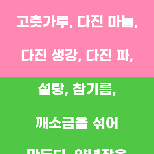 열무 물김치를 담그기 위해서는 먼저 양념장을 만들어야 한다. 양념장은 고춧가루, 다진 마늘, 다진 생강, 다진 파, 설탕, 참기름, 깨소금을 섞어 만든다. 양념장을 만들 때는 각 재료의 양을 적절히 조절하여 맛을 조절할 수 있다.