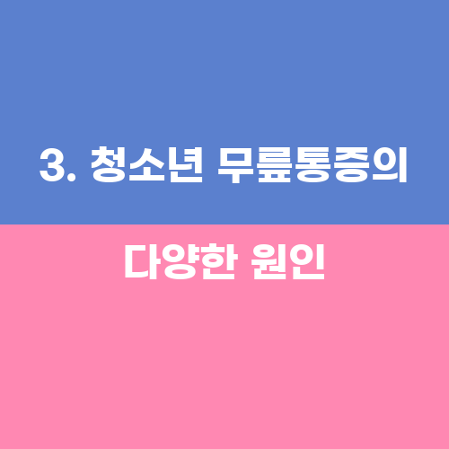 무릎통증은 청소년기에 발생할 수 있는 다양한 원인들이 있습니다. 청소년들은 스마트폰, 태블릿, 노트북 등을 오랜 시간 사용하면서 자세가 흐트러지고, 무릎에 부담이 가해질 수 있습니다. 또한, 청소년들은 신발의 부적절한 착용, 체중 문제, 근육의 불균형 등으로 인해 무릎통증을 경험할 수도 있습니다. 무릎통증은 하나의 단일한 원인이 아니라 다양한 요인들이 복합적으로 작용하여 발생할 수 있는 문제입니다.