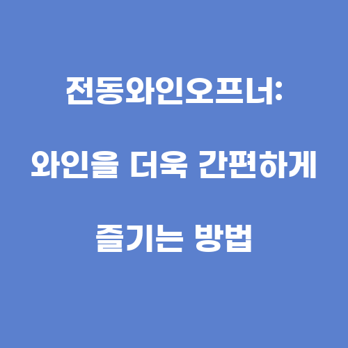 와인은 많은 사람들에게 편안하고 즐거운 순간을 선사해주는 음료수입니다. 하지만 가장 큰 문제는 와인병을 열 때 발생하는 불편함일 것입니다. 특히 전통적인 와인오프너를 사용하다보면 병의 뚜껑을 열기 위해 힘을 많이 들이고 시간이 오래 걸리는 경우가 많습니다. 이러한 문제를 해결하기 위해 등장한 것이 전동와인오프너입니다.