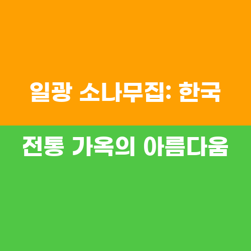 한국 전통 가옥인 소나무집은 일광 소나무집이 대표적인 예시 중 하나로 꼽힙니다. 이 집은 한국의 전통 건축 양식을 잘 보여주는 곳으로, 많은 관광객들이 그 아름다움에 감탄을 자아냅니다. 소나무집은 주로 나무로 지어진 건물로, 그 특징적인 모습과 아름다움으로 많은 이들의 사랑을 받고 있습니다.