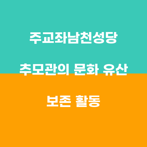 주교좌남천성당 추모관은 주교좌남천성당이 가지고 있는 문화 유산을 보존하고자 다양한 노력을 기울이고 있습니다. 이곳은 주교좌남천성당의 유물들을 소중히 보관하고 전시함으로써 주교좌남천성당의 문화 유산을 널리 알리고 있습니다. 또한, 주교좌남천성당 추모관은 주기적으로 유물 보존과 관리에 대한 교육 프로그램을 운영하여 지역 주민들과 함께 문화 유산을 보존하는 데 기여하고 있습니다.