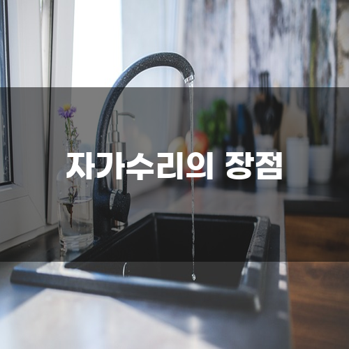 자가수리는 전문가를 부르지 않고도 직접 고장을 해결할 수 있는 장점이 있습니다. 또한 비용을 절약할 수 있고, 작은 고장이나 교체 작업은 자신의 능력으로 해결할 수 있습니다. 따라서 개수대 수도꼭지 교체 작업은 자가수리로 충분히 해결할 수 있는 작업 중 하나입니다.