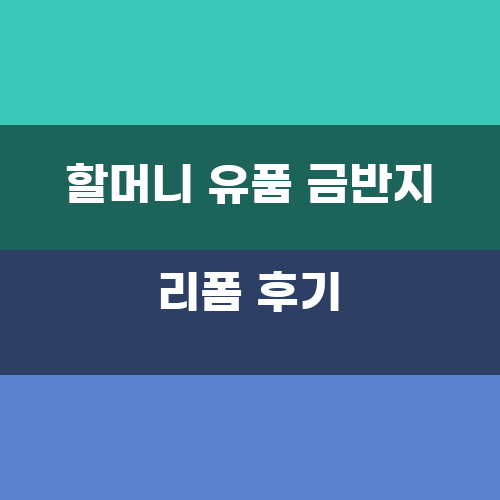 할머니 유품 금반지 리폼 후에는 주기적인 클리닝과 보관에 신경을 써야 하며, 주기적인 점검을 통해 변색이나 파손을 방지해야 합니다.