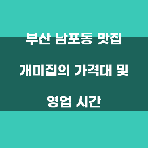 부산 남포동 맛집 개미집의 가격대 및 영업 시간