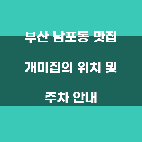 부산 남포동 맛집 개미집의 위치 및 주차 안내