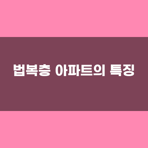 법복층 아파트는 일반 아파트와는 다르게 아파트 전체를 독창적으로 사용할 수 있는 형태로, 가족들이 더 많은 공간을 활용할 수 있습니다. 또한, 다양한 시설과 서비스를 제공하여 편리한 생활을 할 수 있도록 도와줍니다.