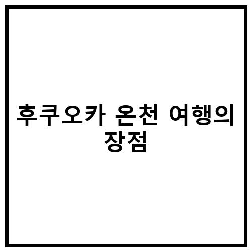 후쿠오카 온천 여행의 장점은 여러 가지가 있습니다. 첫째, 후쿠오카는 교통이 편리하고 접근성이 좋아 여행하기 편리합니다. 또한 후쿠오카는 다양한 숙박 시설과 레스토랑이 있어 편안한 여행을 즐길 수 있습니다. 둘째, 후쿠오카의 온천은 현대적이면서도 전통적인 매력을 지니고 있어 방문객들에게 다채로운 경험을 제공합니다.