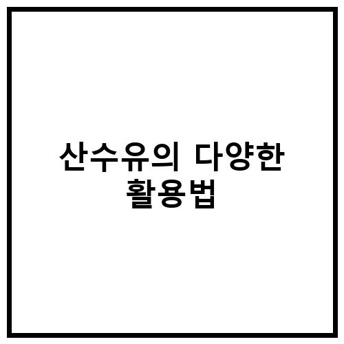 산수유는 다양한 방법으로 활용할 수 있습니다. 산수유 열매를 그대로 섭취하거나 삶아서 먹을 수 있을 뿐만 아니라, 산수유 주스나 산수유 차로 마셔도 좋습니다. 또한, 산수유 오일을 직접 만들어서 스킨케어나 헤어케어에 활용할 수도 있습니다. 산수유 열매를 간편하게 섭취하고 싶다면, 산수유 가루나 산수유 캡슐을 구입하여 섭취하는 것도 좋은 방법입니다. 산수유는 건강에 좋은 식물이기 때문에 다양한 방법으로 활용하여 건강을 유지하고 미용에도 도움을 줄 수 있습니다.