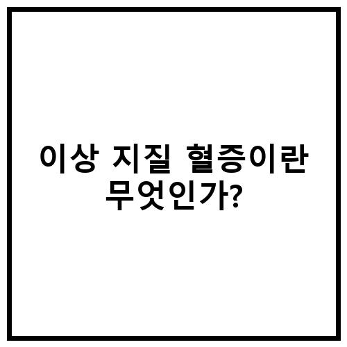 이상 지질 혈증이란 무엇인가?
