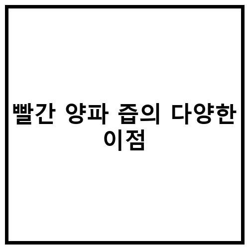 빨간 양파 즙은 다양한 건강에 도움이 되는 효능을 가지고 있습니다. 먼저, 빨간 양파에는 항산화물질인 쿼세틴이 풍부하게 함유되어 있어 면역력을 향상시키고 신진대사를 촉진시키는 효과가 있습니다. 또한, 빨간 양파에는 식이 섬유가 풍부하게 함유되어 있어 소화를 도와주고 변비 예방에 효과적입니다. 또한, 빨간 양파 즙에는 혈액순환을 촉진시키는 효과가 있어 혈액순환을 개선하고 혈액 내 콜레스테롤 수치를 조절하는 데 도움을 줍니다.