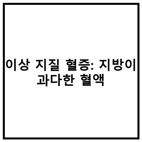 이상 지질 혈증이란 무엇인가요?