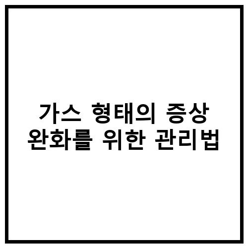 가스 형태의 증상을 완화하기 위해서는 식이요법의 변화와 생활습관의 조절이 필요합니다. 먼저, 가스 형태를 유발하는 음식을 피하고, 가스를 많이 발생시키는 음식을 섭취하지 않도록 주의해야 합니다. 또한, 식사 시간을 규칙적으로 유지하고, 식사 후에는 적절한 운동을 통해 대장 운동을 촉진시키는 것이 중요합니다. 물을 충분히 섭취하여 대장 내의 가스를 제거하고, 스트레스를 관리하여 증상을 완화할 수 있습니다.