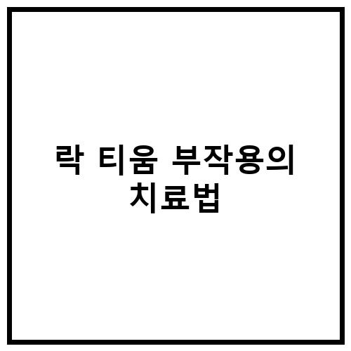 락 티움 부작용이 발생한 경우에는 즉시 전문가의 진료를 받아야 합니다. 락 티움 부작용은 심각한 건강 문제를 유발할 수 있으므로, 전문가의 치료를 받아야 합니다. 락 티움 부작용의 치료법은 주로 스트레스 관리와 신체적인 활동을 통해 락 티움 분비를 조절하는 것이 중요합니다. 또한, 약물 치료나 심리치료를 통해 락 티움 부작용을 치료할 수도 있습니다.