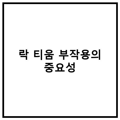 락 티움 부작용은 심각한 경우 생명을 위협할 수도 있습니다. 과도한 락 티움 분비로 인해 신체의 균형이 깨지면 다양한 신체기관에 영향을 미치며, 이는 심각한 건강 문제를 유발할 수 있습니다. 락 티움 부작용이 지속되면 신체의 면역력이 약해지고, 다양한 질병에 쉽게 감염될 수 있습니다. 따라서 락 티움 부작용이 발생할 경우 즉시 전문가의 진료를 받는 것이 중요합니다.