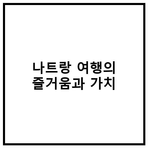 나트랑은 아름다운 해변과 푸른 바다로 유명한 베트남의 관광지 중 하나입니다. 나트랑으로의 여행은 아름다운 풍경을 감상하고 현지 음식을 맛보며 여행의 즐거움을 누릴 수 있는 좋은 기회입니다. 또한, 나트랑의 문화와 역사를 경험하며 새로운 경험을 쌓을 수 있는 가치 있는 여행이 될 것입니다.