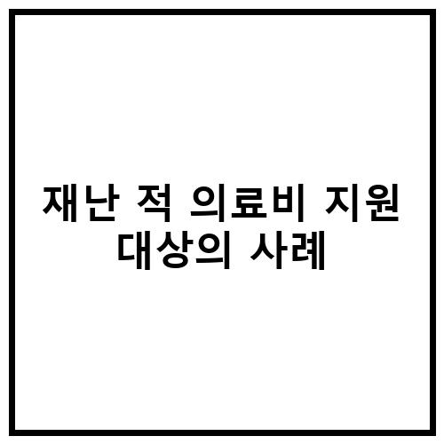 재난 적 의료비 지원 대상의 사례 중 하나는 대형 재난으로 인한 의료비 부담이 큰 가정입니다. 이들은 재난으로 인해 급격히 높아진 의료비로 인해 경제적으로 어려움을 겪을 수 있습니다. 이에 정부나 사회적 단체가 지원을 제공하여 의료비 부담을 경감시켜주는 것이 중요합니다. 이를 통해 가정 내에서의 금전적 어려움을 해소하고, 건강을 지키는 역할을 합니다.