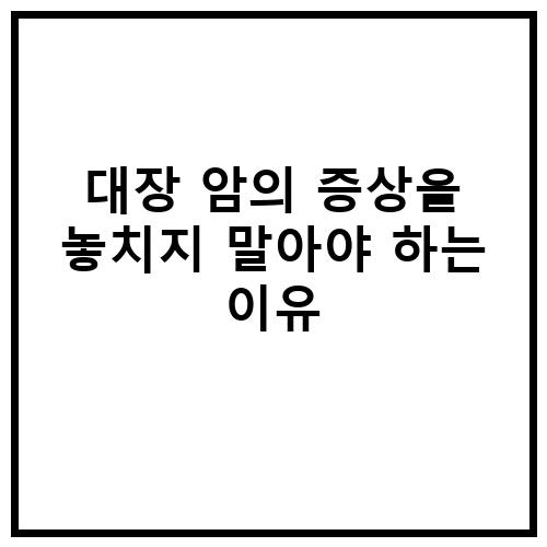 대장 암의 증상을 놓치지 말아야 하는 이유는 매우 중요합니다. 대장 암은 조기에 발견되면 치료가 가능하므로 증상을 인식하고 놓치지 않는 것이 중요합니다. 대장 암이 발생하면 치명적일 수 있으며, 증상을 놓치면 암이 악화되어 치료가 어려워질 수 있습니다. 따라서 대장 암의 증상을 놓치지 말고 적시에 의사를 방문하여 정확한 진단과 치료를 받는 것이 중요합니다.