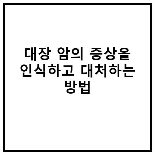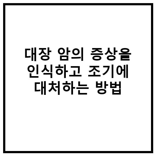 대장 암의 증상을 인식하고 조기에 대처하는 방법은 매우 중요합니다. 대장 암은 조기에 발견되면 치료가 가능하므로 증상을 놓치지 않고 조기에 대처하는 것이 중요합니다. 대장 암의 증상을 인식하기 위해서는 변의 형태, 색깔, 냄새의 변화를 주의 깊게 관찰해야 합니다. 또한 복통, 체중 감소, 피로감, 혈변 등의 증상이 나타날 경우 즉시 의사를 방문하여 정확한 진단과 치료를 받아야 합니다.
