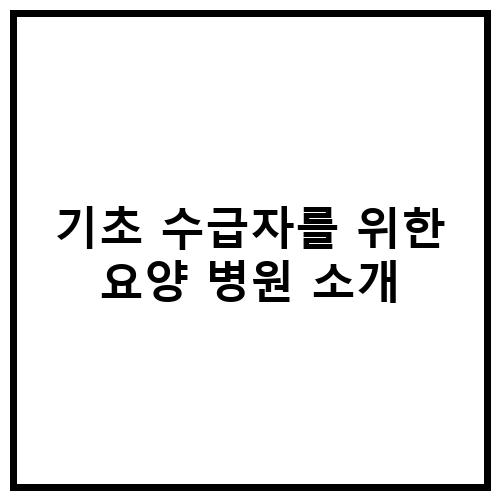 예를 들어, A 요양 병원은 기초 수급자들을 위한 전용 병동을 운영하고 있습니다. 이 병원은 기초 수급자들에게 병원비 할인 혜택을 제공하며, 전문적인 의료진이 기초 수급자들을 위해 최선을 다해 치료하고 있습니다. 또한 A 요양 병원은 기초 수급자들의 편의를 위해 전용 식사 메뉴와 편의시설을 제공하고 있습니다. 이를 통해 기초 수급자들이 안정적이고 편안한 치료를 받을 수 있도록 도와주고 있습니다.