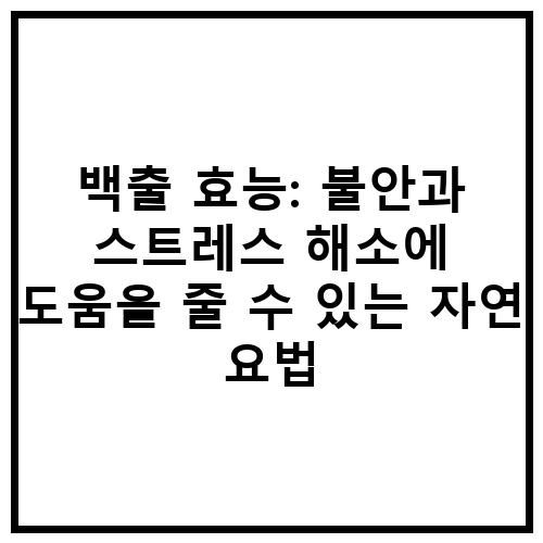 백출은 다양한 효능을 가지고 있으며, 적절한 사용 방법으로 피부 건강에 도움을 줄 수 있는 자연 요법입니다. 백출을 사용할 때에는 자신의 피부 상태와 목적에 맞는 백출을 선택하여 사용하는 것이 중요합니다. 백출은 자연 요법 중 하나로, 건강한 생활습관과 함께 사용한다면 더욱 효과적인 결과를 얻을 수 있을 것입니다. 백출을 꾸준히 사용하여 건강한 피부와 몸을 유지하는 데 도움을 줄 수 있습니다. 백출은 불안과 스트레스 해소에 도움을 줄 수 있는 자연 요법으로, 건강한 삶을 살기 위한 한 가지 좋은 방법이 될 것입니다.