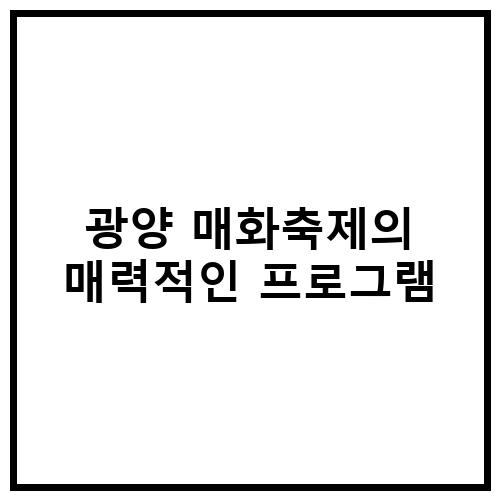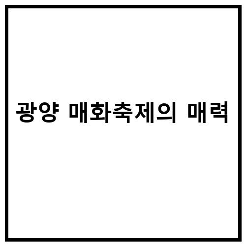 광양 매화축제는 한국에서 가장 유명한 매화 축제 중 하나로 손꼽힙니다. 이 축제는 매년 11월 중순부터 12월 중순까지 열리며, 광양시 일대에 피어나는 아름다운 매화꽃을 감상할 수 있는 기회를 제공합니다. 광양은 전국적으로도 유명한 매화의 산지로 유명하며, 축제 기간 동안에는 수많은 관광객들이 매화의 아름다움을 만끽하기 위해 방문합니다.
