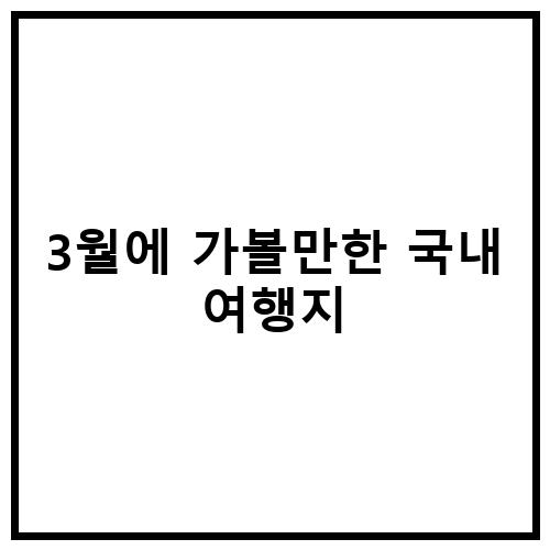 3월은 봄을 맞아 가볼만한 국내 여행지가 많은 시기입니다. 이른 봄을 느낄 수 있는 곳들을 소개해 드리겠습니다. 봄철이면서도 아직 한산한 분위기를 느낄 수 있는 곳들을 찾아 떠나보세요.