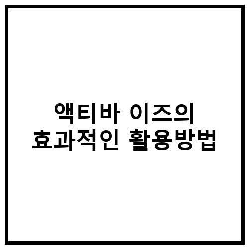 액티바 이즈의 효과적인 활용방법