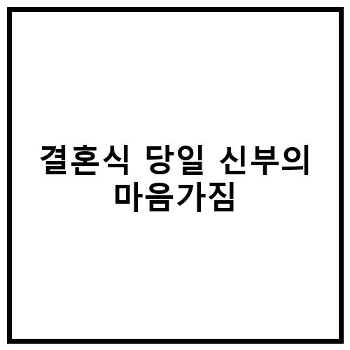 결혼식 당일 신부는 마음가짐이 매우 중요합니다. 결혼식 당일에는 신부가 행복하고 즐거운 순간을 보낼 수 있도록 긍정적인 마음가짐을 유지해야 합니다. 결혼식은 신부와 신랑의 새로운 시작이기 때문에 긍정적인 에너지를 가지고 축하 받아야 합니다.