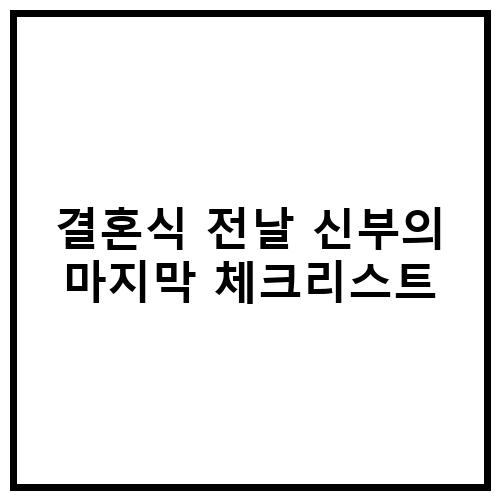 결혼식 전날 신부는 마지막 체크리스트를 꼼꼼히 확인해야 합니다. 결혼식 당일에는 신부가 모든 것을 완벽하게 준비해야 합니다. 마지막 체크리스트를 통해 결혼식 당일에 필요한 모든 것을 확인하고 미리 준비해두어야 합니다.