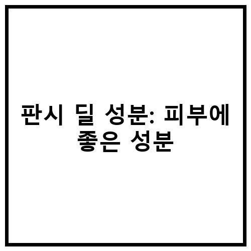 판시 딜 성분은 피부에 좋은 성분으로 유명한데, 이는 피부를 진정시키고 보호하는 데 도움이 됩니다. 주로 화장품이나 스킨케어 제품에 사용되며, 피부 염증을 완화하고 피부 장벽을 강화하는 데 도움이 됩니다. 판시 딜 성분은 대부분 천연 성분이기 때문에 피부에 부담을 주지 않으면서도 효과적으로 작용합니다.