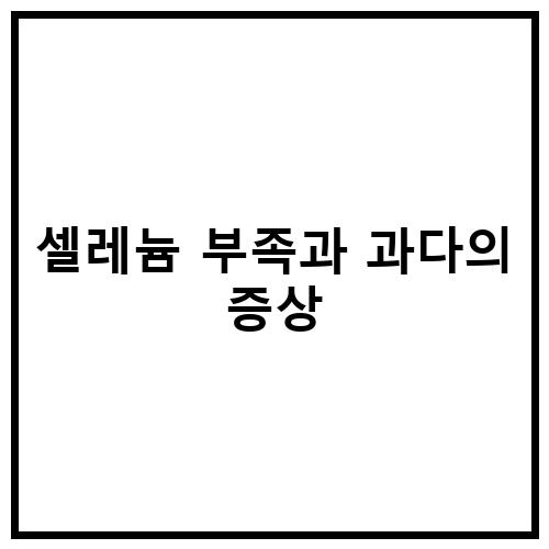 셀레늄 과다는 셀레늄 중독 증상을 일으킬 수 있는데, 이는 구토, 설사, 두통, 피로감, 두통, 발진, 발적, 손발이 저리는 증상 등을 유발할 수 있습니다. 셀레늄 과다는 심각한 건강 문제를 일으킬 수 있으므로, 적절한 섭취량을 유지하는 것이 중요합니다.